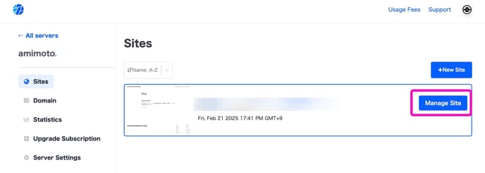 Step 4. Click [Manage Site] for the site you want to delete